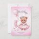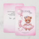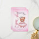 Babydusch Tack Kort med en bra vattenfärgad illustration av en nalle i en söt rosa-klänning.