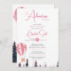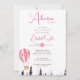 Babyduschinbjudningar i äventyr flicka. Utformningen innehåller texten "äventyr har påbörjats.." tillsammans med anpassningsbara texter för att passa perfekt. Bilderna är gjorda med en fyrkant.