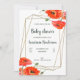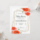 Inbjudan till babyduschen. Kort som dekorerats med blommor med vattenfärg. Bakgrunden till inbjudan är vit. Information om händelsen kan konfigureras med valfritt färg eller storlekt teckensnitt. Lätt och billigt sätt för gäster från inbjudan till firande!