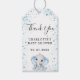 En vit bakgrund. Med blå faux glitter och en söt elefantpojke. På framsidan finns ett handskript i stil och texten: Tack. Anpassa och lägg till namn/text och datum. Tillbaka: utrymme för skriva för hand.