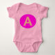 Designen för denna babygrow består av en monogram/ett initialt A. Brevfärgen är blek goldenrod, ellipsen är magentafärgad. Vila av objektet är rosa.