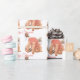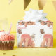 Flicka med rosa ruffade byxor och gjorde ett huvudstöd, nalle och leksak som täckte pappert. Perfekt till flicka dusch.