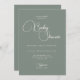 Projicera en känsla av modern enkelhet och elegans med den här snyggten enkla inbjudan till babydusch i djup grönt med ecru beige-text. Ett snyggt calligraphy-skript parades med en enkel serif type ansikte presenter din händelseinformation med modern flair. Resultatet är en smakfull minimalistisk syn som alltid finns i stil. Anpassa texten med din händelseinformation i textmallen för enkel använda.