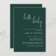 Enkel Grönt Skriptinbjudan till Neutral Baby Shower som du enkelt kan anpassa genom att klicka på knappen "Personalize" (Anpassa). Vår inbjudan till babydusch i elegant och söt har modern kalligrafi och modern typografi i vitt på gröntens bakgrund. I inbjudan skulle dina gäster ta emot kärlek. Alla inslag på det här kortet är fullt redigerbara, både text och färg i bakgrunden. Klicka bara på knappen "Anpassa med verktyg i designläge" som är kapslad under länken "Anpassa" för att redigera!