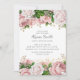 Elegant modern botanisk rosa och guld vattenfärgsfärgad blommigt (ro) och grön på inbjudan till babydusch med vita trädgårdsteman. Text, teckensnitt, teckensnitt storlekt och färg är helt anpassade, så det här kortet kan vara designat för kostym som passar dina behov.
