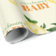 Den här babyduschpresenten för anpassningsbar som omsluter pappra innehåller ett citrustema på en färgad av lätt gult. Uttrycket "hon har en baby" är skrivet med kalkgrönt och orange, med två citroner med vattenfärg på textens höger och en citron till lämnat. Du kan anpassa blöjorna så att de innehåller ditt eget namn eller egen text.