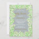 Den här babyduschen inbjudan är försedd med vattenfärgsfärgade handmålade löv som dansar på ett skonsamt sätt runt kant, deras gröntar som utmärker en känsla av färskhet och tillväxt. Varje löv, noggrant utformat, visar upp komplicerade detaljer som tillför en aning sofistikering. Den gyllene och vita grönten mot en mjuk bakgrund bär på en klassisk charm och modern konst och lovar en händelse som är så unik och speciell som den kommande ankomsten.
