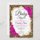 Bjukbildsinbjudan. Elegantens rosa och vita design med utskrift av faux glitter guld och leopard. Innehåller trendigets skriptteckensnitt och shock rosa. Perfekt för en snyggt babyskare...