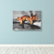 Den mycket gulliga bebisleoparden kopplar samman att kliva in i en bassäng av vatten. Färgrika katter på en svartvit bakgrund. Underbar gåva för någon som älskar de stora katterna.