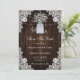Baby utandningskort bröllop spara datum med baby utandningspaut bouquet inuti en mason burk mot en rustisk träbakgrund som är försedd med vit blommigt snöre och ljus. Vår romantiska rustiska blommigt bröllop spara datum-kort är perfekt för en rustisk land, eller ladugård bröllopsfest inspirerad av baby andblommor.