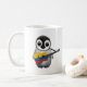 Denna gulliga design presenterar ett litet bebispingvininnehav en skrapad och ha på sig akustisk gitarr. Flagga av Colombia målas på till den gammala gitarren som ger det en patriotisk look. Den flightless fågeln sitter besegrar med dess fot bredvid varje annan och tittar framåtriktat med dess huvud som vippas på litet till en sida. Över storleksanpassad head och litet förkroppsliga tillsammans med specificerar i fjädrarna, och gitarren skapar en härlig kombination av en tecknad och en realistisk look. Denna chic design för den unika och förtjusande colombianska pingvinet är perfekt för alla djur och musikälskare.