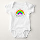 Ljus färgrik regnbåge med en vit fluffig moln i varje ände. En mall tvärs över molnen som läser Babyregnbåge i svart text kan användas som den är, ersättas med din egen text eller helt enkelt raderas för att lämnas tom.