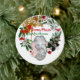 Ge Julgran mycket mer julnjutning och liv med det här Cute Baby, första julen Anpassningsbar Text keramisk prydnad. Denna berömvärda julprydnad illustrerar Baby elefant & Mor på gröntens bakgrund för botaniska blommigtar av krans. Det är möjligt att lägga till ditt personliga meddelande på båda sidor om denna utsmyckning. Du kan lägga ett band av guld-tråd för att hänga upp den här fantastiska nyckelsakén. Du kan anpassa och ordna om med knappen "Anpassa ytterligare" och välja teckensnitt stil, textformat och foto.