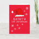 Baby's 1:a jultomten Hat Snowflake-fotokort. Cute baby första juldesign med en julhatt, snöflingor och baby namn i ett vitt skript - anpassa med baby's namn och med foto inuti kortet.
