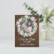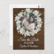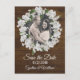Rustic chic bröllop spara datum-vykort i mörk ser ut med bilder av en andedräkt av blommigt i baby som ramlar in lycklig-parets foto. Anpassa dina behov med bild och text till kostym. Matchande produkter är tillgängliga.