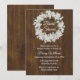 Rustik chic2 inbjudningskort för möhippan i en mörk trä ser ut med grafik av vit utandningsluft från baby blommigt. Anpassa all text för din bröllop-händelse. Fin inbjudan till bruden kommer att ta hand om.