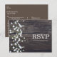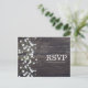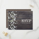 Baby's Breath Blommig & Mörkt Rustikt Trä RSVP Inbjudan Vykort