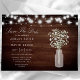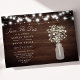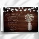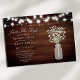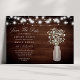 Meddela din bröllopsdag med charmfull rustik stil med detta "Spara datumet"-kort som visar ömtålig babysand i en masonburk mot en träbakgrund, upplyst av strängljus. Perfekt för att skapa en varm och inbjudande ton för din speciella dag, kombinerar detta kort rustik elegans med en touch av romantik. Anpassa med dina evenemangsuppgifter för att skapa ett minnesvärt och personligt meddelande som speglar din unika fest.