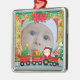 The square ornament is trimmed with a bright, cheerful border of snowflakes, holiday lights, and poinsettias, making it a beautiful addition to any holiday tree.