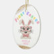 Celebrate a precious milestone with this adorable 'First Easter' ornament, perfect for your little one's special day! Featuring a charming knitted-texture bunny wearing stylish pink heart-shaped glasses and a cute bow tie, this design radiates sweetness and joy. The vibrant 'FIRST EASTER' text in pastel colors adds a playful touch. Personalize it with your baby's name to create a unique keepsake.