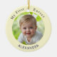 Celebrate baby's first Easter with this stylish custom ornament. This elegant decoration displays your baby's photo within a round Spring yellow border, with 'My First Easter' curved over the top, and baby's name below the picture. On the back, add the year and your own custom message to the template. This Easter ornament makes an ideal gift for new parents looking to mark this special milestone, from godparents, family or friends. Capture the joy of baby's first Easter with this beautiful keepsake.
