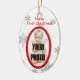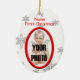 En grafisk design av snöflingor, ett ram för dina foto- och textmallar för Baby Första julprydnaden.