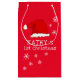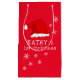 Baby's First jul Red Santa Hat Snowflake Small Gift Bag. Cute baby första juldesign med en julhatt, snöflingor och baby namn i ett vitt skript - anpassa sig efter baby's namn.