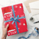 Baby's First jul Red Santa Hat Snowflake Wrapping Papper. Cute baby första juldesign med en julhatt, snöflingor och baby namn i ett vitt skript - anpassa sig efter baby's namn.