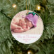 Baby's First jul Rosa Flicka Photo Ceramic Ornament. Söt och söt jultomte i baby för ett flicka. Anpassa med foto, namn och år.