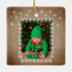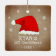 Baby's First jul Santa Hat Snowflake Photo Ceramic Ornament. Cute baby första juldesign med en julhatt, snöflingor, baby, namn på ena sidan och baby med snöflingor på andra sidan, personliggör med din baby namn, bild och år.