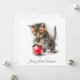 Fånga årstidens magi med detta söta akvarellkort med en fluffig tabbykatt som lekfullt slår till en ljusröd julgransprydnad. Konsten har känsliga färgsprut och mjuka, fjäderlätta pälsstrukturer som ger en lekfull och konstnärlig känsla mot den rena vita bakgrunden. Denna anpassningsbara design är en perfekt souvenir för ett barns första högtid, ett meddelande om ett nytt husdjur eller för alla kattälskare som älskar en touch av katt charm.