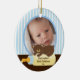 Cute Photo jul Ornament med en fin björn med flaska på blå och brun bakgrund, lägg till DITT FOTO! Perfekt för första julklappar och andra julklappar. En julklapp som säkert kommer att uppskattas i många år till komen.