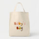 This canvas bag will hold all your baby's stuff. Sweet and colorful lettering on the front says, "Baby's Bag."