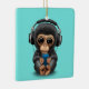 Babyschimpans med hörlurar och celltelefonen julgransprydnad keramik