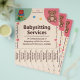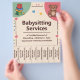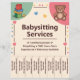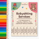 A clean and friendly flyer with Tear Off Strips featuring a cheerful layout, and illustrations of building blocks, a teddy bear, colorful hearts and dots! It could be perfect for all activities with kids such as babysitting, nanny, child care, tutor, etc