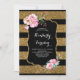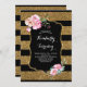 Rosa vattenfärgsblommor och guld glitter rand - elegant vintage - kallduschinbjudningar till svart babydusch