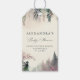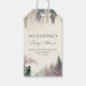 En vit vattenfärgsillustration av lush foliage i grönt och mauve och lila, som gnistar upp sig med ljus och magiskt damm, med bergen i bakgrunden och en vacker liten älv som göms i greyn, dekorerar denna märkre för babyduschgåva med ett förtrollat skogstema. En elegant, modern personlig märkre för en sagoskur. Perfekt för mammor att vara den som kärlek är den sagda skogsmiljön, den älvskog eller den älvträdgård som finns och grönt, mauve och guld.