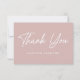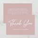 Ett enkelt babyduschkort som visar "Tack" på framsidan i ett fet vitt skript med dammig ro bakgrund. Anpassa kortets framsida med ditt namn eller din anpassningsbar. Baksidan av dammiga ro tackar du visningarna med ditt budskap om anpassningsbar och namn.