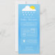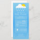 Appen för väderprognos inspirerade till en inbjudan till babydusch i neutralt med moln och sol över blå bakgrund med anpassningsbar vit text och ikoner.