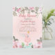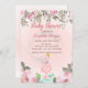 Cute baby rosa flamingo med en guld krona och en inbjudan till en babydusch för blommor med vattenfärg. Dessa inbjudningar till babyduschen är lätta att anpassa för din händelse genom att helt enkelt lägga till din information.