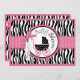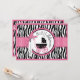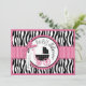 Vild och söt svart och vit zebra tryck med shock rosa-accenter och polka punkt baby barnvagn med 3D-blick och band för ett flicka-kort för barnduschinbjudan.