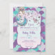 Vit sjöjungfru, babyduschinbjudan, med en vacker sjöjungfru och vacker under havets varelser mot regnbåge på djupa havets botten. Anpassa det enkelt och snabbt med information om party, tryck helt enkelt på anpassningsknappen för att ytterligare ordna om och formatera stil och placera texten. Matchande artiklar tillgängliga i arkivet! c) Lycklig Cat Studio.