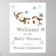 Rustiska babyduschar poster med söta arktiska valar och snöflingor. Perfekt för en vinterbabydusch. Ord kan ändras till kostym med dina egna uppgifter eller krav