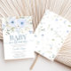 Babyskor för Dusty Blue Baby Bloom Baby Shower Inbjudningar
