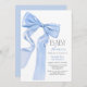 Gratulerar till glädjen att välkomna en pojke med den här charmerande blåa babyduschinbjudan. Med ett vackert illustrerat satin-band och en mjuk färg-palett ger den här designen en en aning söthet och elegans till din speciella händelse. Anpassa texten så att den blir unik!