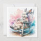 En serenscen skildrar en stor kanin, som på ett lovande sätt lurar en mindre kanin när de slappnar av i en gungande stol. All text kan ändras.