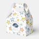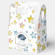 De här favoritboxarna i Måne och Stars Baby Shower är perfekt för en enkel babydusch. Den moderna visuella designen visar en marinblått vattenfärgsmolnform med gulten crescent måne och spridda stjärnor.