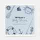 Det är en pojkbabydusch, Nautisk babyduschtema, Bebisduschtema, fira nästa babydusch med vår marinblå, roliga moderna sjöfärgssegelbåt, ankare, hjul, båt, ring, livräddningsgummi, krabba i pastellblått färg, baksida med marinblått rand mönster. Du kan anpassa din egen text och färg genom att "anpassa den här designen".