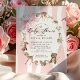 Vi firar er lilla annons med vår charmerande babyduschinbjudan, med vackra trädsdjur omgivna av en modern rosa rand bakgrund. Trendigets rosa coquette-butik tillför en liten elegans och stollig, skapar denna inbjudande perfekt för ett skogstemat firande. Inbjudan dina kära till i glädjen av detta speciella tillfälle med en design som fångar den nya begynnelsens sötma.