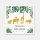Papper napkin från Cute party med en grupp söta safari-djur i faux guld och glätttropiska löv © Blue Bunny Studio